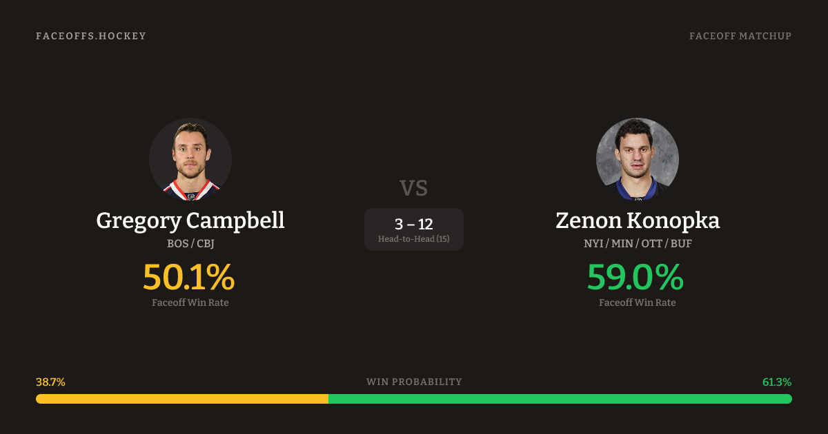Gregory Campbell vs Zenon Konopka — Faceoff Head-to-Head
