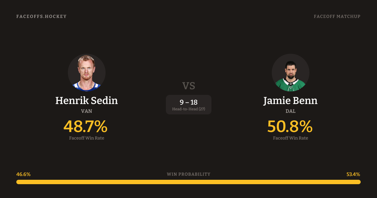 Henrik Sedin vs Jamie Benn — Faceoff Head-to-Head