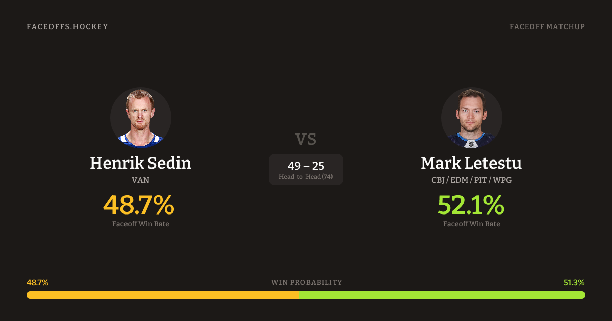 Henrik Sedin vs Mark Letestu — Faceoff Head-to-Head