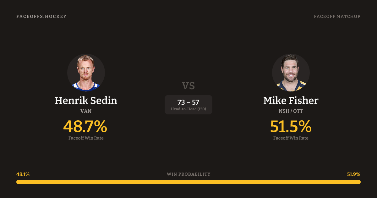 Henrik Sedin vs Mike Fisher — Faceoff Head-to-Head