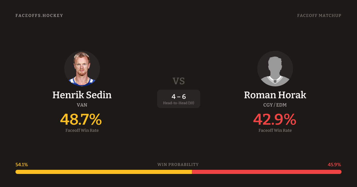 Henrik Sedin vs Roman Horak — Faceoff Head-to-Head