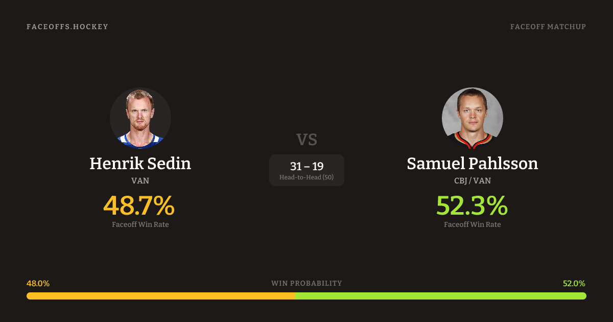 Henrik Sedin vs Samuel Pahlsson — Faceoff Head-to-Head