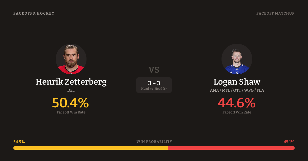 Henrik Zetterberg vs Logan Shaw — Faceoff Head-to-Head