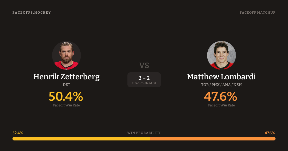 Henrik Zetterberg vs Matthew Lombardi — Faceoff Head-to-Head