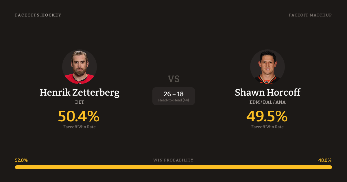 Henrik Zetterberg vs Shawn Horcoff — Faceoff Head-to-Head