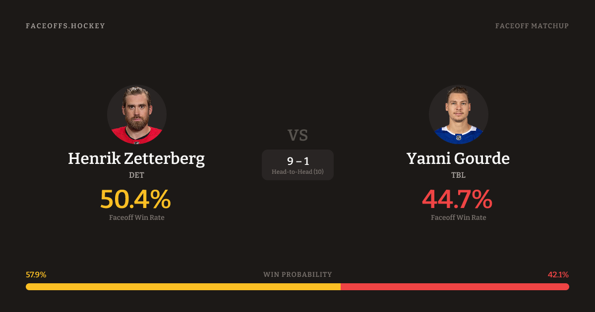 Henrik Zetterberg vs Yanni Gourde — Faceoff Head-to-Head