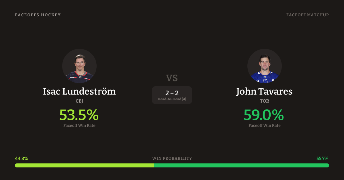 Isac Lundeström vs John Tavares — Faceoff Head-to-Head