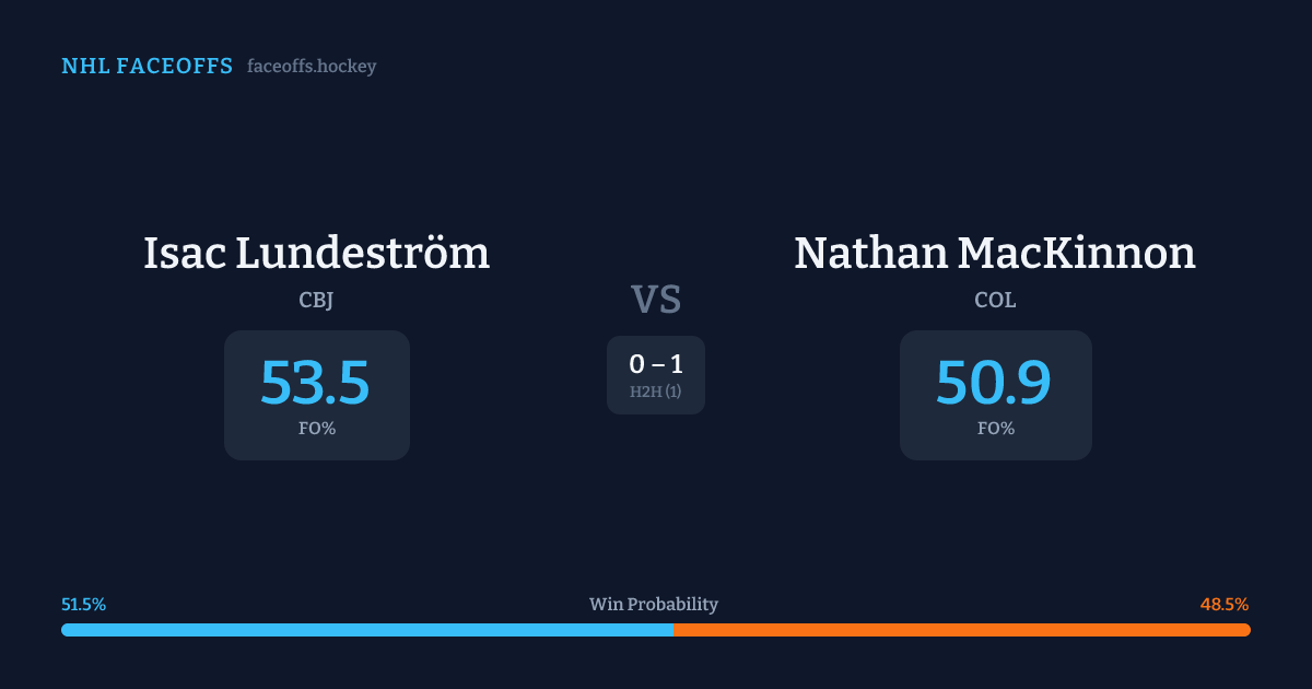 Isac Lundeström vs Nathan MacKinnon — Faceoff Head-to-Head
