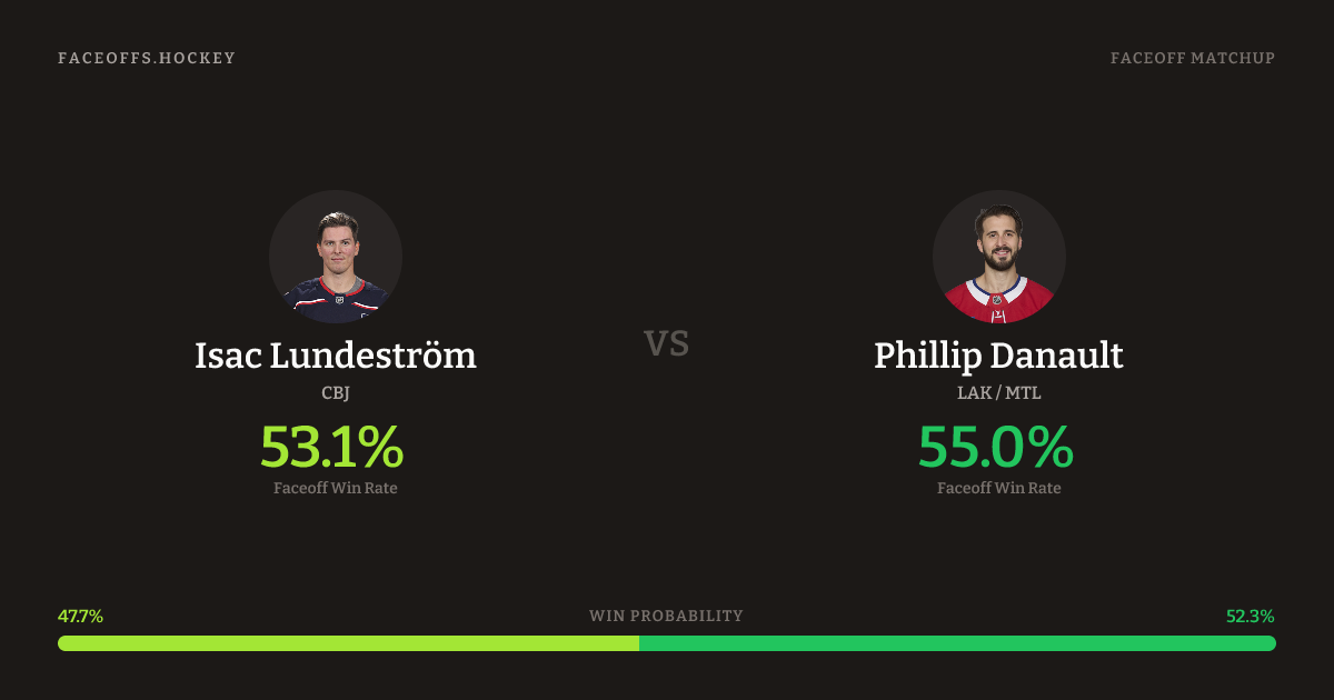 Isac Lundeström vs Phillip Danault — Faceoff Head-to-Head