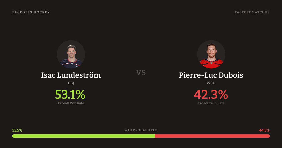 Isac Lundeström vs Pierre-Luc Dubois — Faceoff Head-to-Head