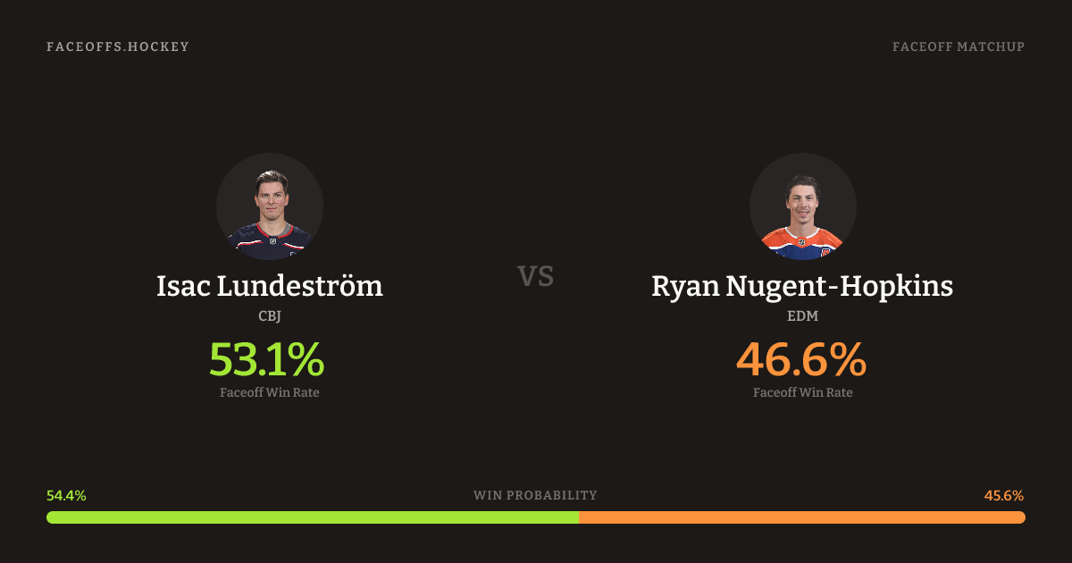 Isac Lundeström vs Ryan Nugent-Hopkins — Faceoff Head-to-Head