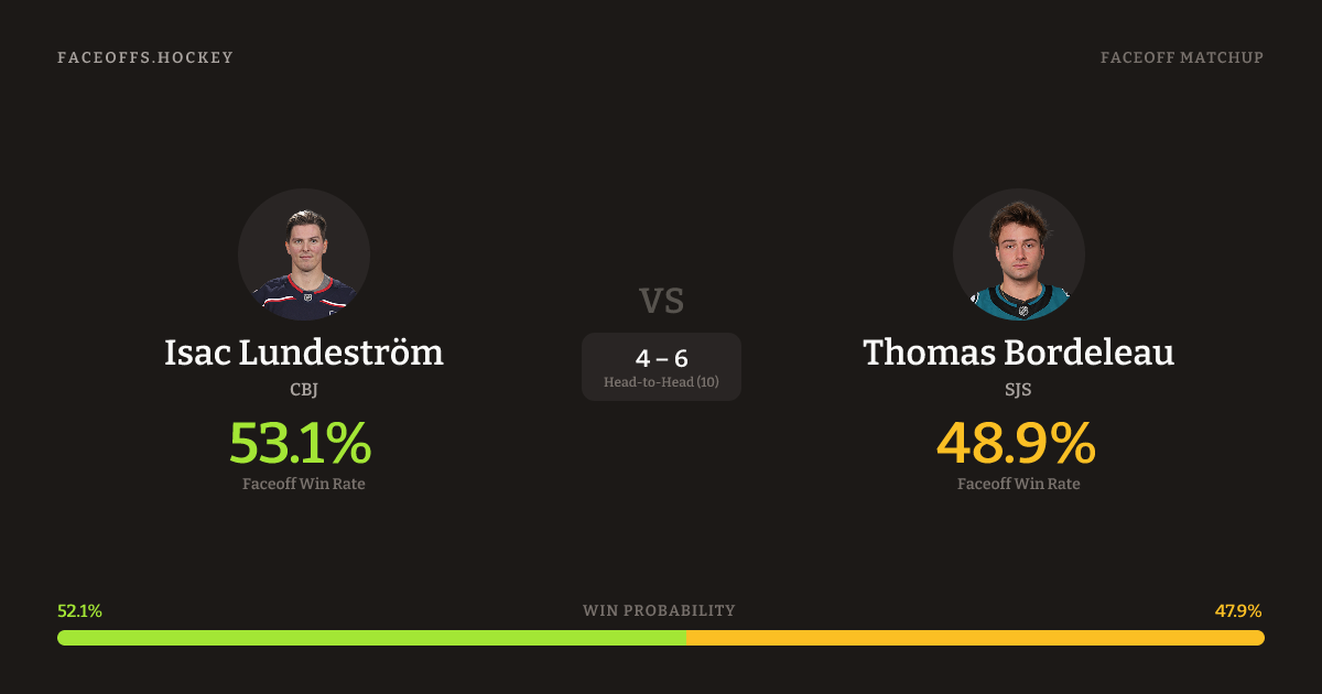 Isac Lundeström vs Thomas Bordeleau — Faceoff Head-to-Head