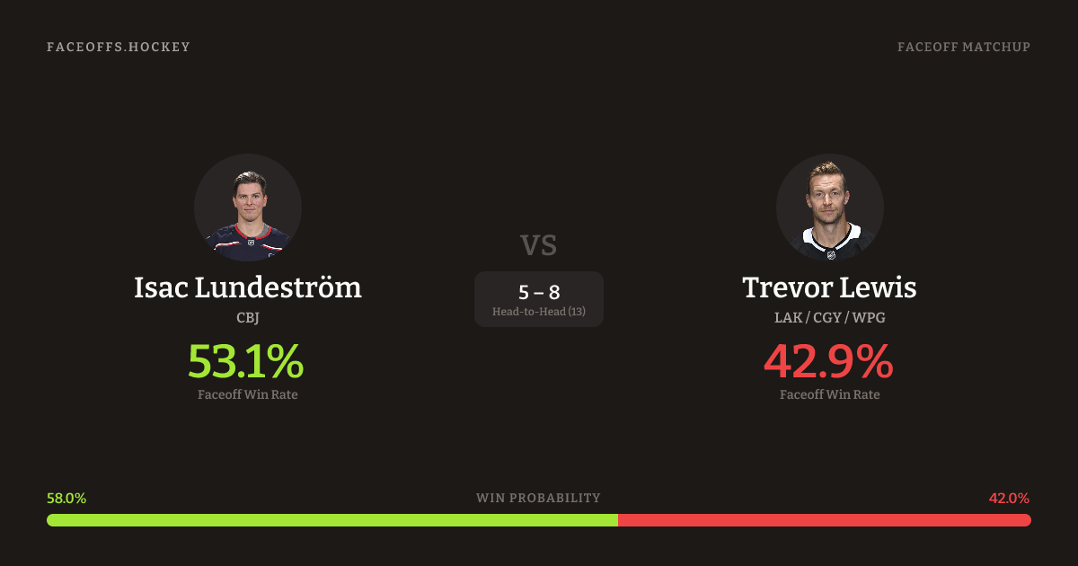 Isac Lundeström vs Trevor Lewis — Faceoff Head-to-Head