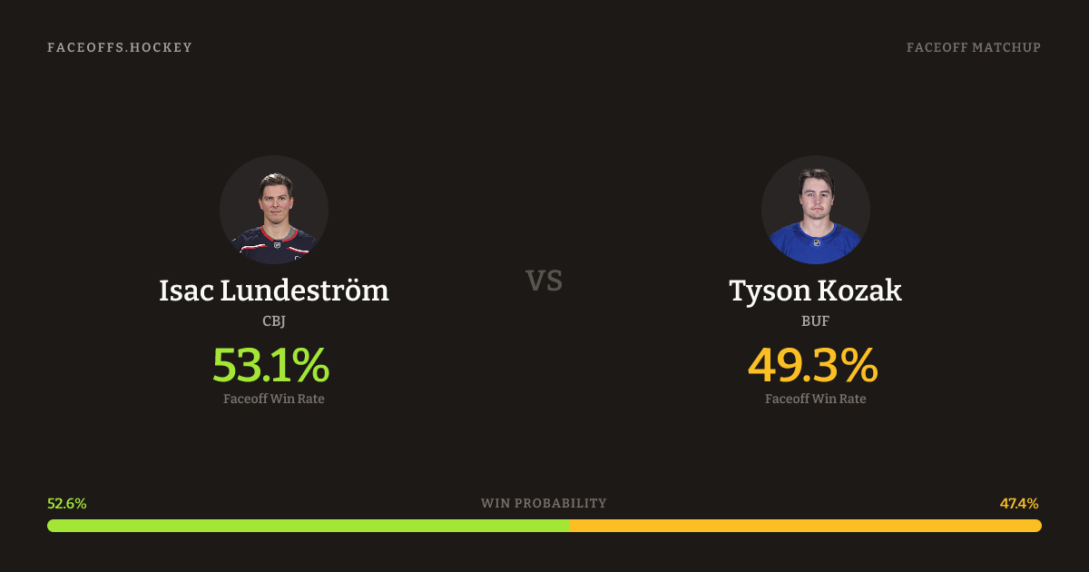 Kozak shoots left. Lundeström is 47.2% vs left-shot opponents (123).