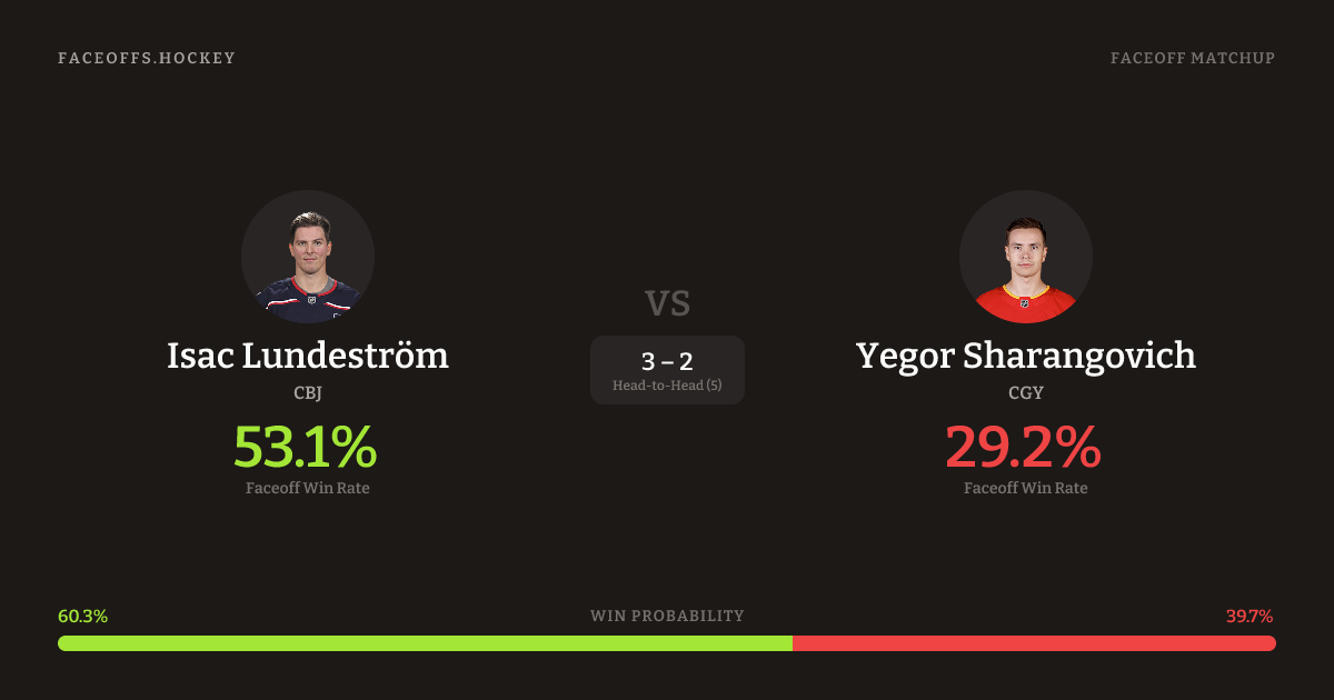 Isac Lundeström vs Yegor Sharangovich — Faceoff Head-to-Head