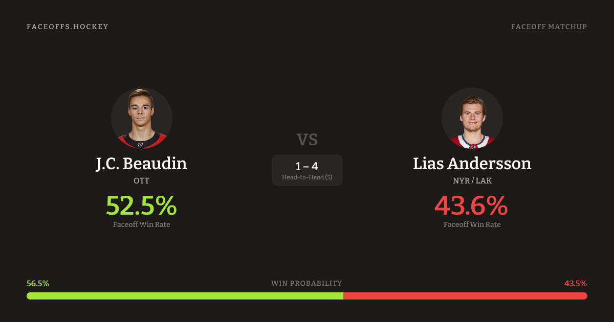 J.C. Beaudin vs Lias Andersson — Faceoff Head-to-Head