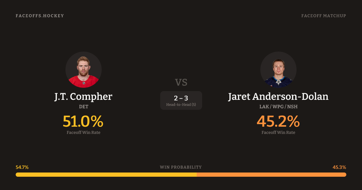 J.T. Compher vs Jaret Anderson-Dolan — Faceoff Head-to-Head