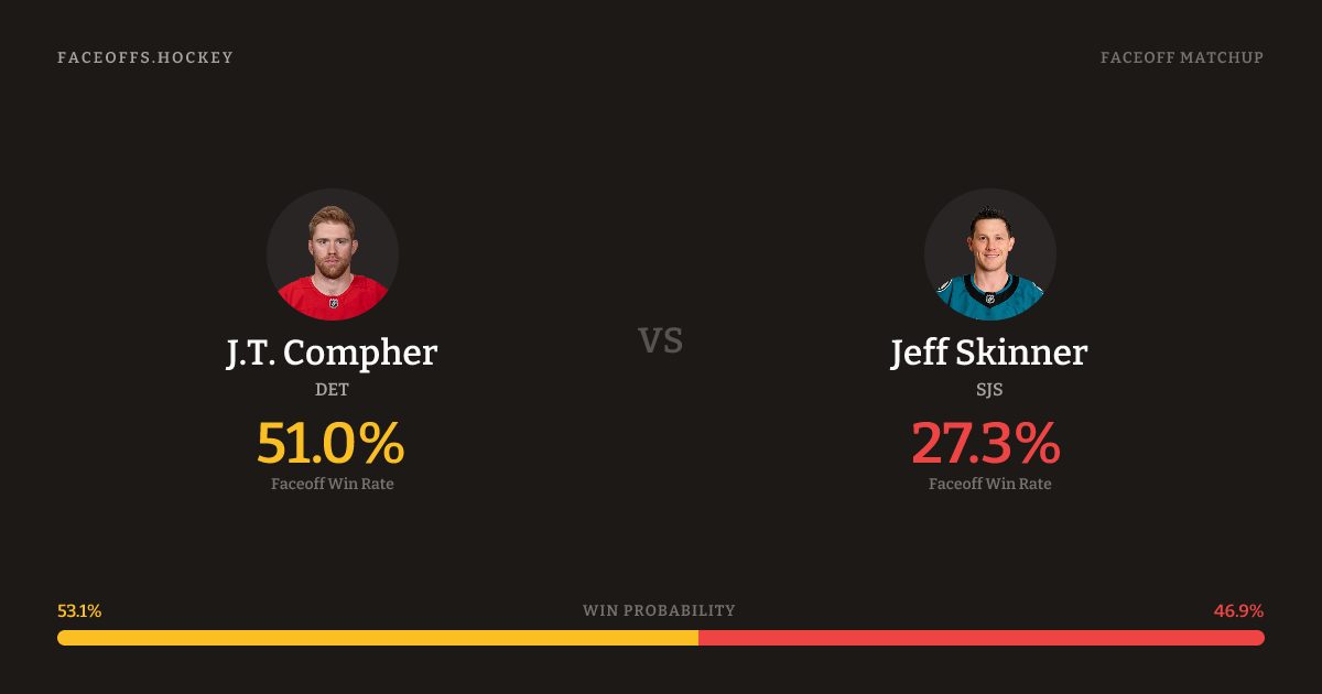 J.T. Compher vs Jeff Skinner — Faceoff Head-to-Head