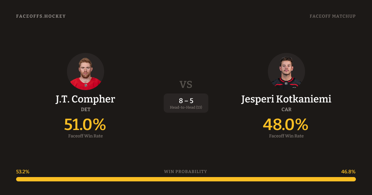 J.T. Compher vs Jesperi Kotkaniemi — Faceoff Head-to-Head