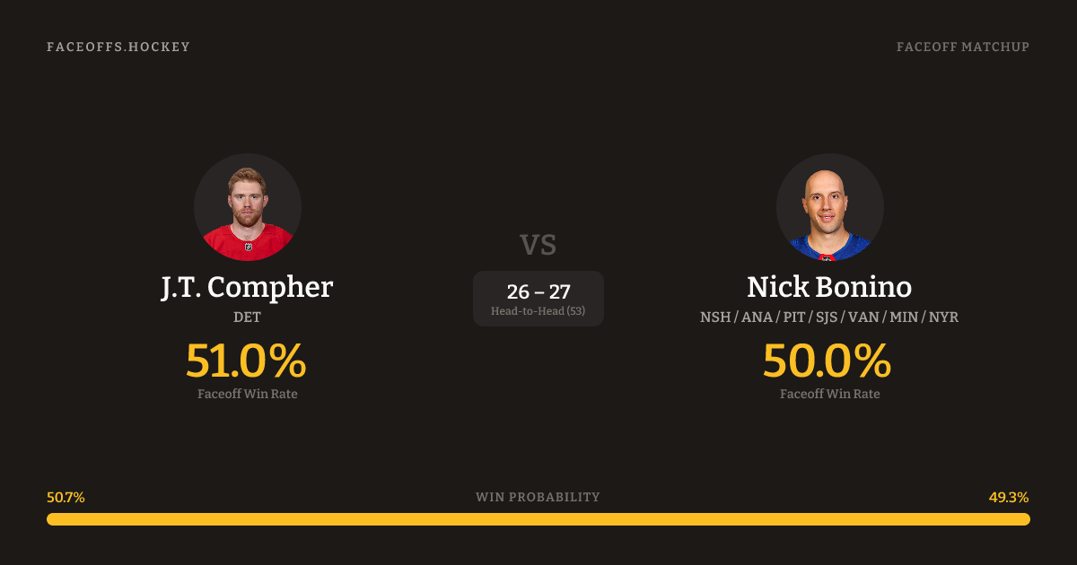 J.T. Compher vs Nick Bonino — Faceoff Head-to-Head