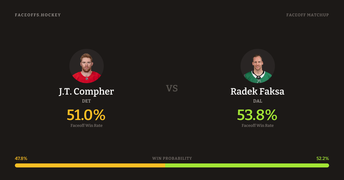 J.T. Compher vs Radek Faksa — Faceoff Head-to-Head