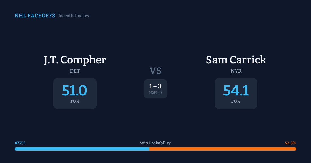 J.T. Compher vs Sam Carrick — Faceoff Head-to-Head