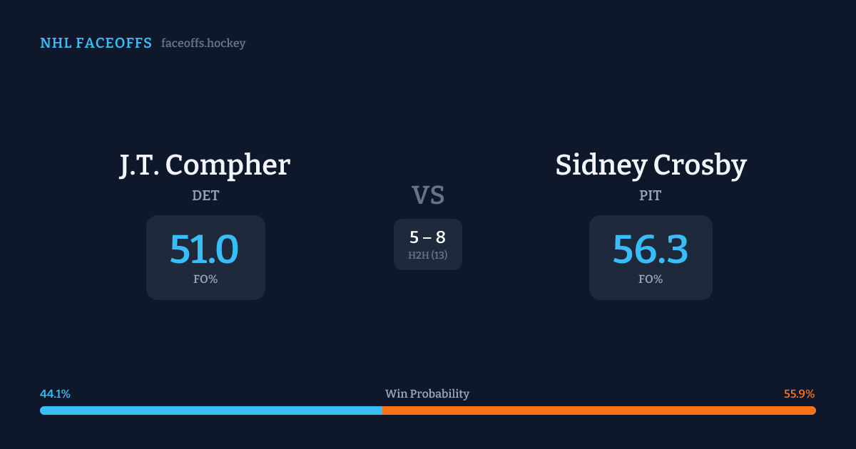 J.T. Compher vs Sidney Crosby — Faceoff Head-to-Head