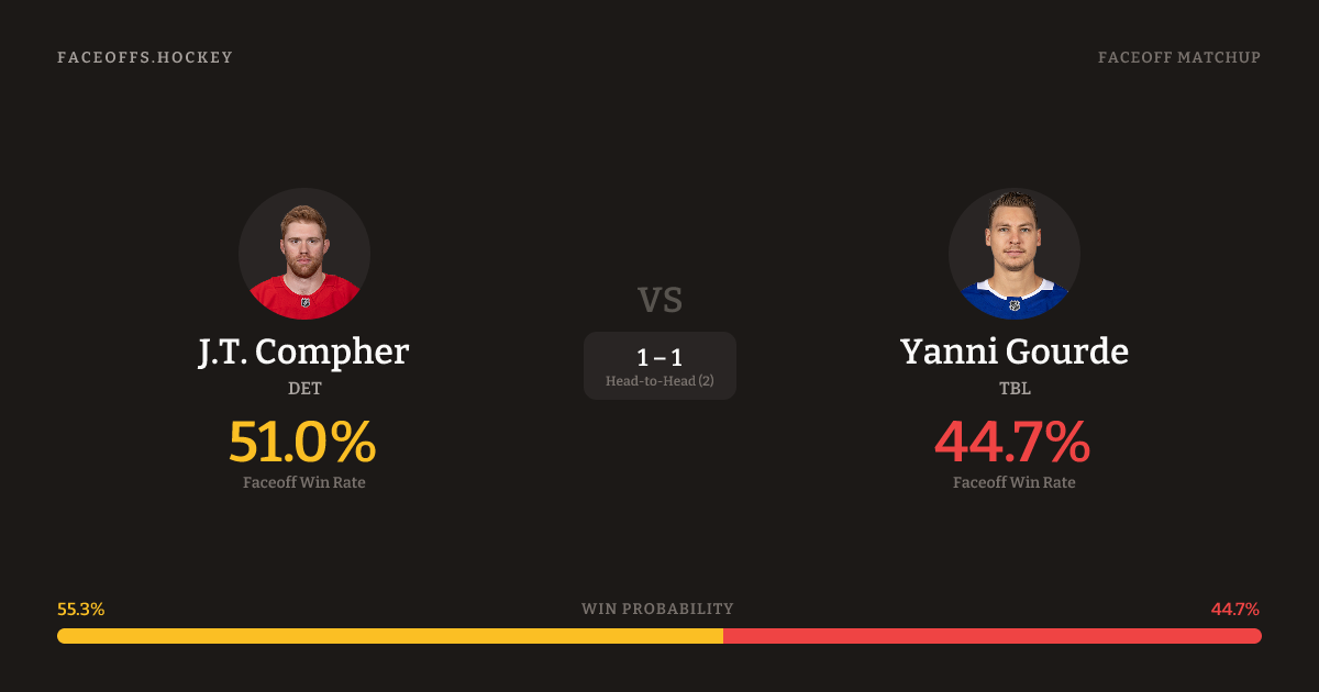 J.T. Compher vs Yanni Gourde — Faceoff Head-to-Head