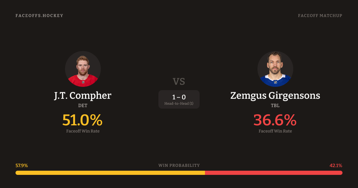 J.T. Compher vs Zemgus Girgensons — Faceoff Head-to-Head