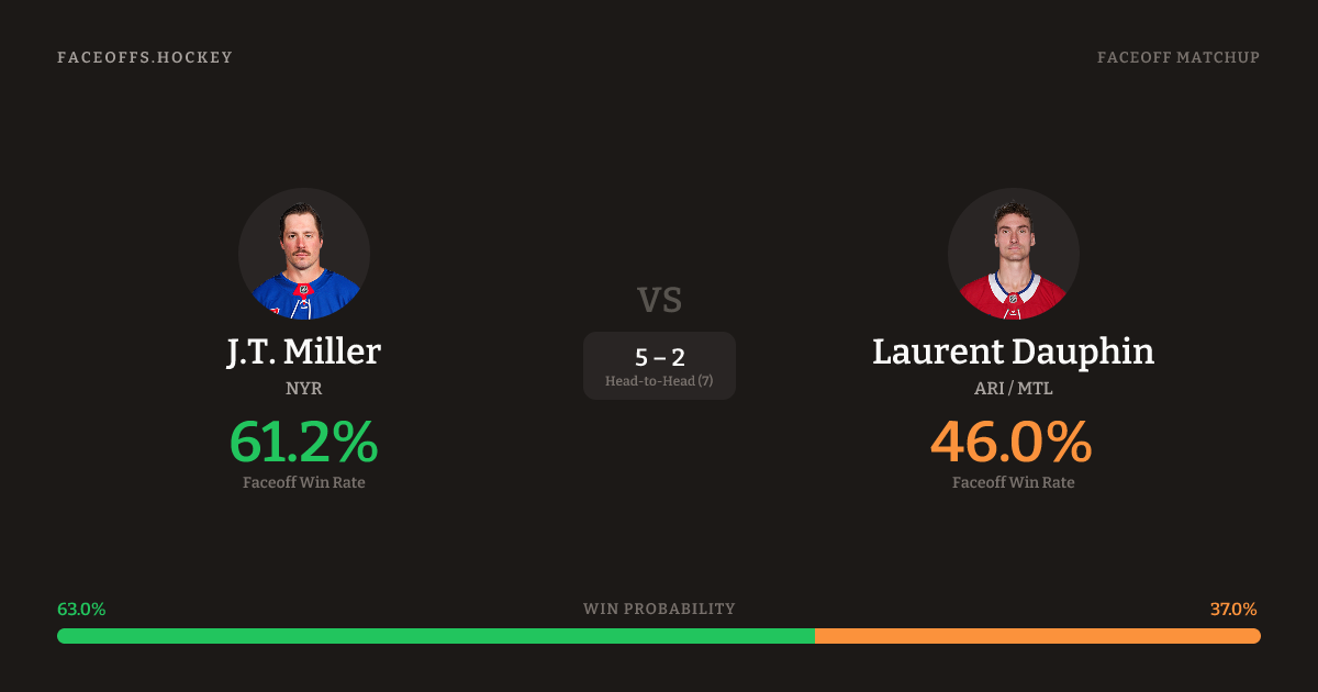J.T. Miller vs Laurent Dauphin — Faceoff Head-to-Head