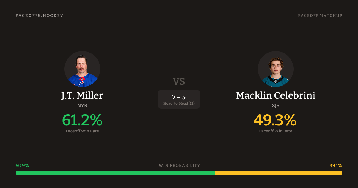 J.T. Miller vs Macklin Celebrini — Faceoff Head-to-Head
