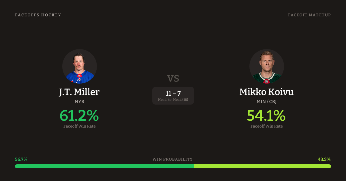J.T. Miller vs Mikko Koivu — Faceoff Head-to-Head