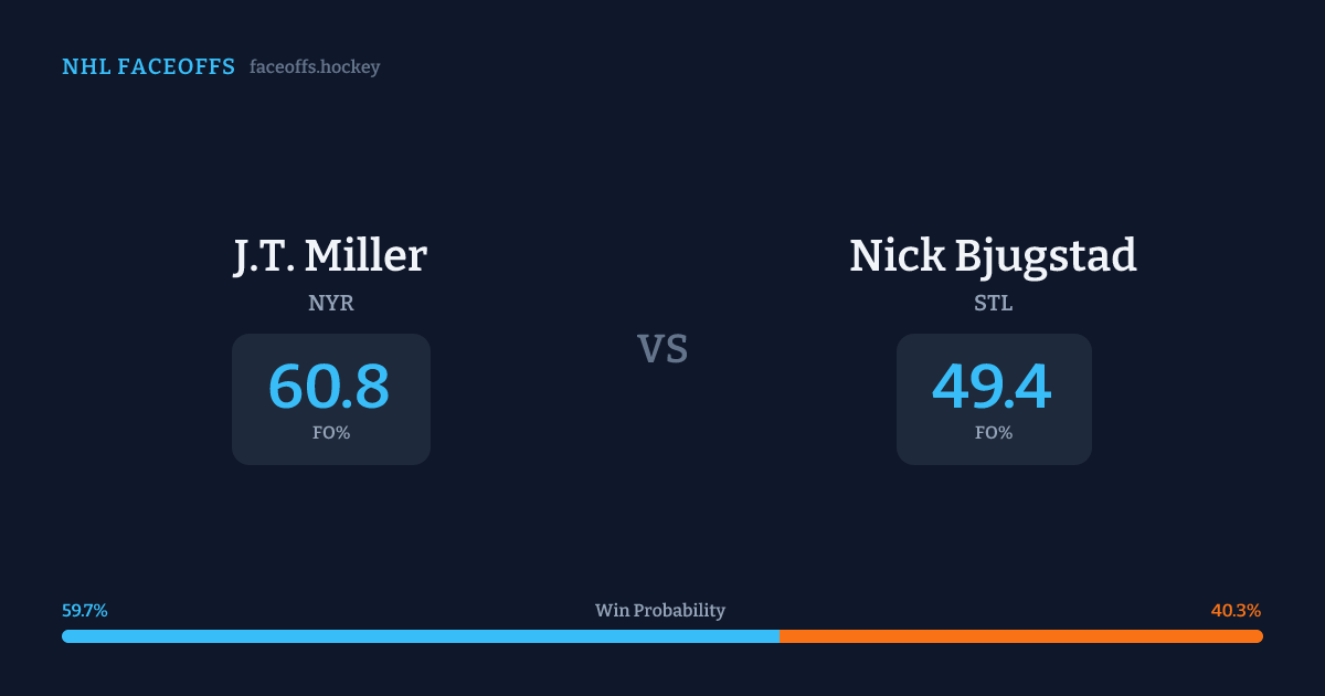 J.T. Miller vs Nick Bjugstad — Faceoff Head-to-Head