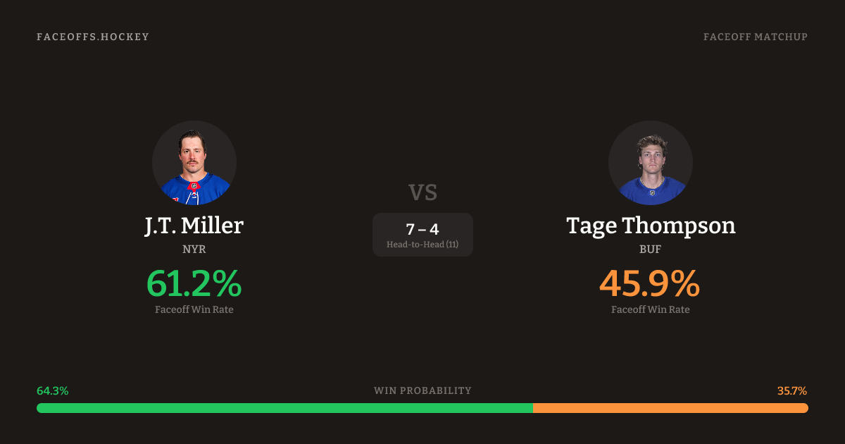 J.T. Miller vs Tage Thompson — Faceoff Head-to-Head
