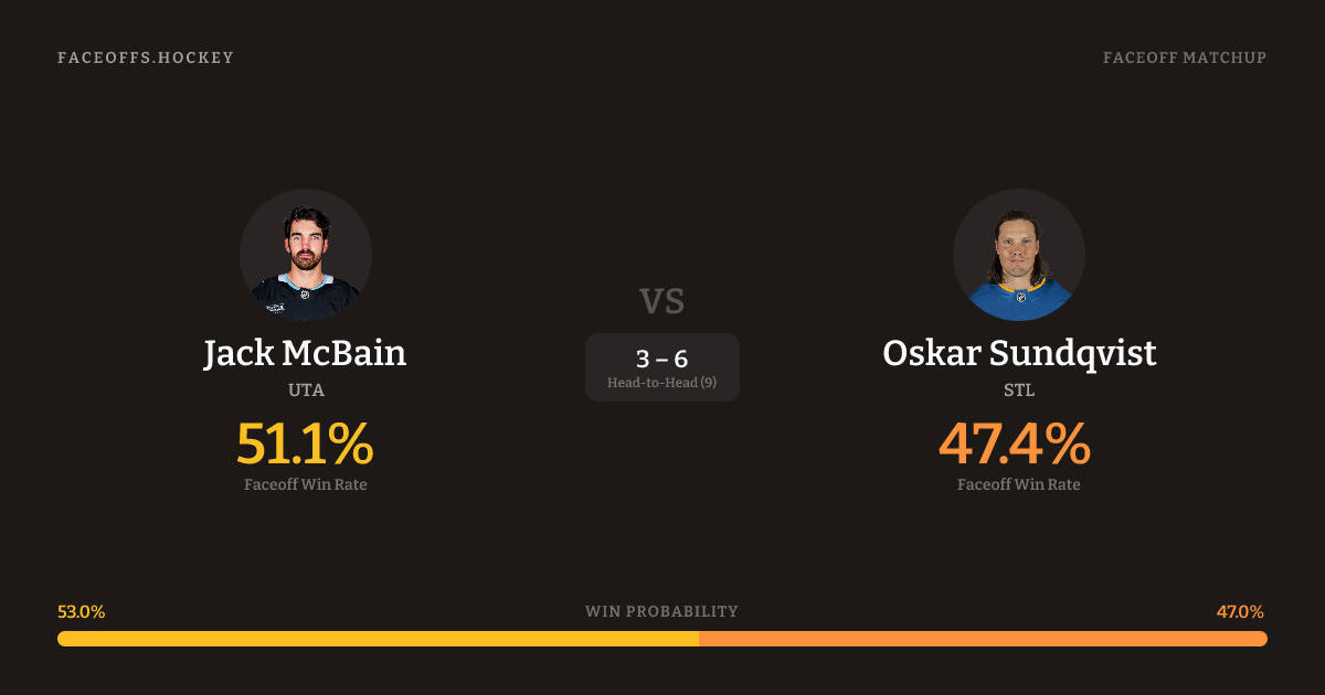Jack McBain vs Oskar Sundqvist — Faceoff Head-to-Head