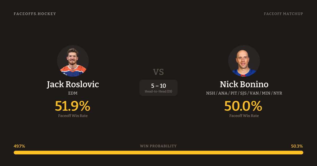 Jack Roslovic vs Nick Bonino — Faceoff Head-to-Head