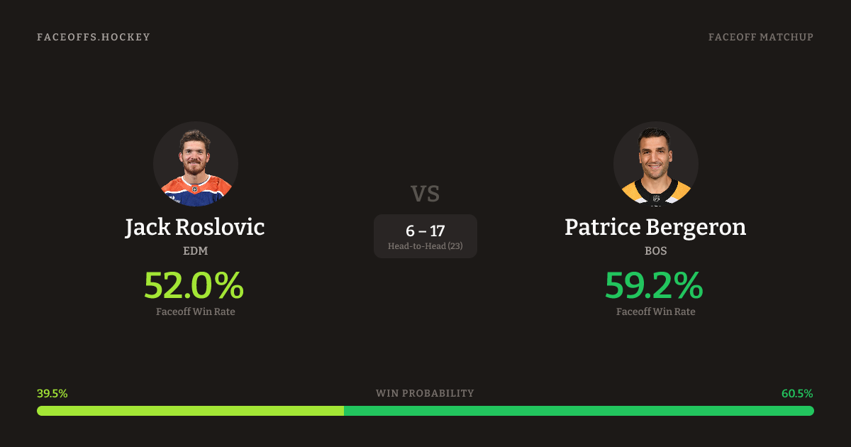 Jack Roslovic vs Patrice Bergeron — Faceoff Head-to-Head