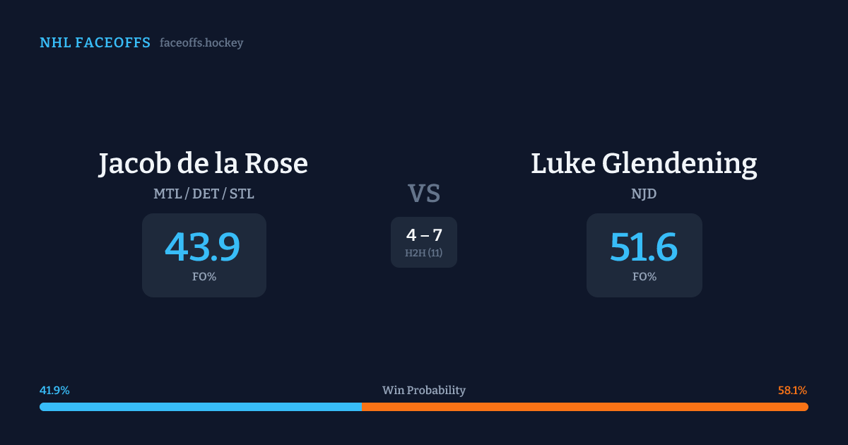 Jacob de la Rose vs Luke Glendening — Faceoff Head-to-Head