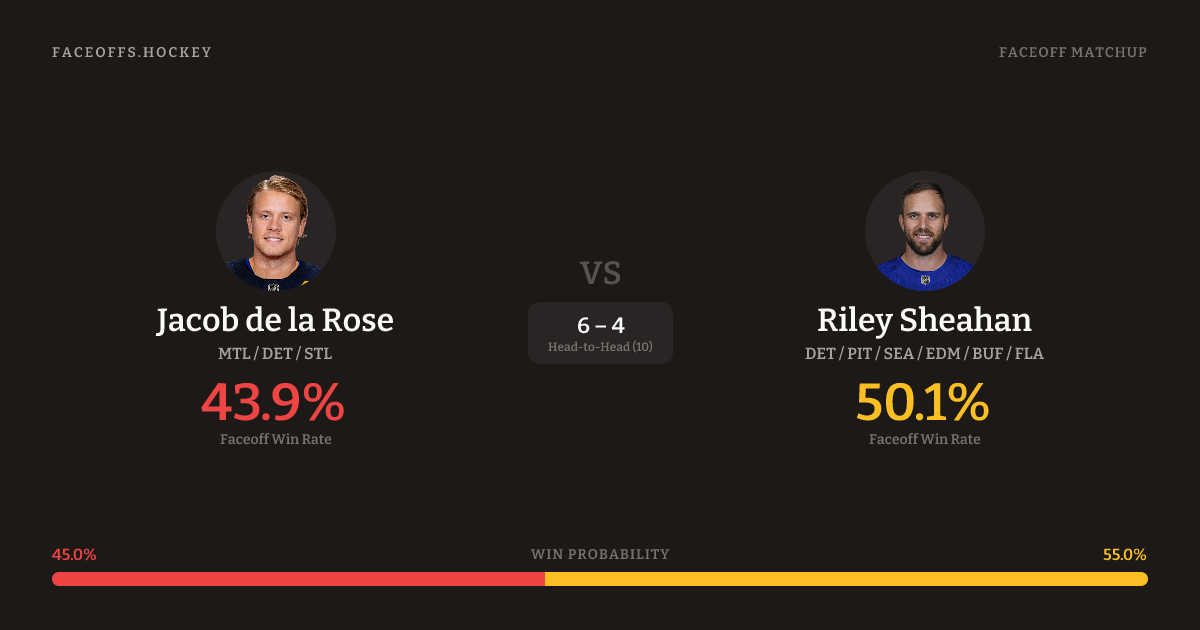Jacob de la Rose vs Riley Sheahan — Faceoff Head-to-Head