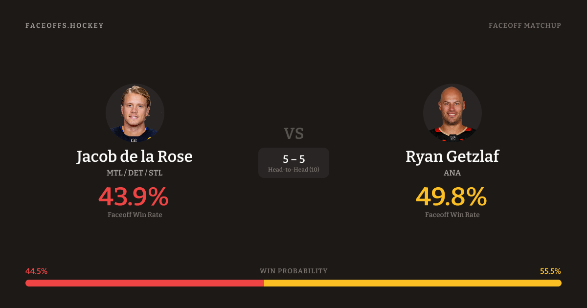 Jacob de la Rose vs Ryan Getzlaf — Faceoff Head-to-Head