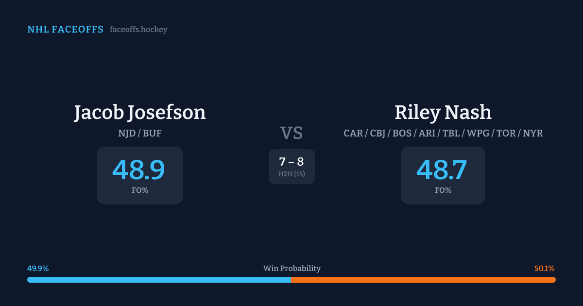 Jacob Josefson vs Riley Nash — Faceoff Head-to-Head