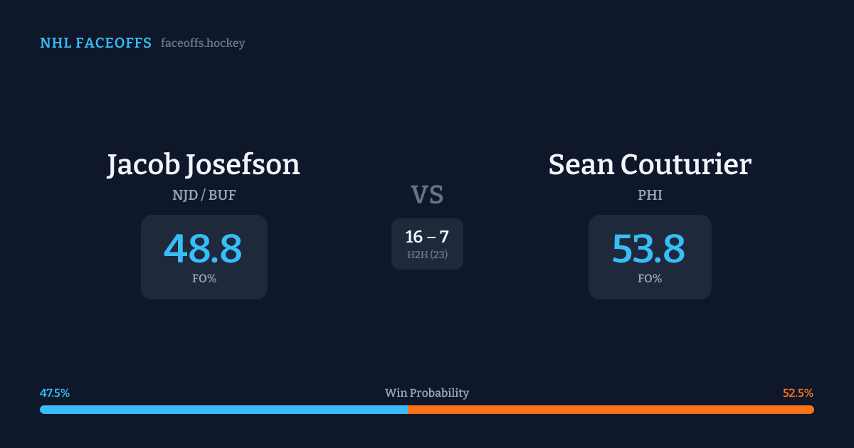 Jacob Josefson vs Sean Couturier — Faceoff Head-to-Head