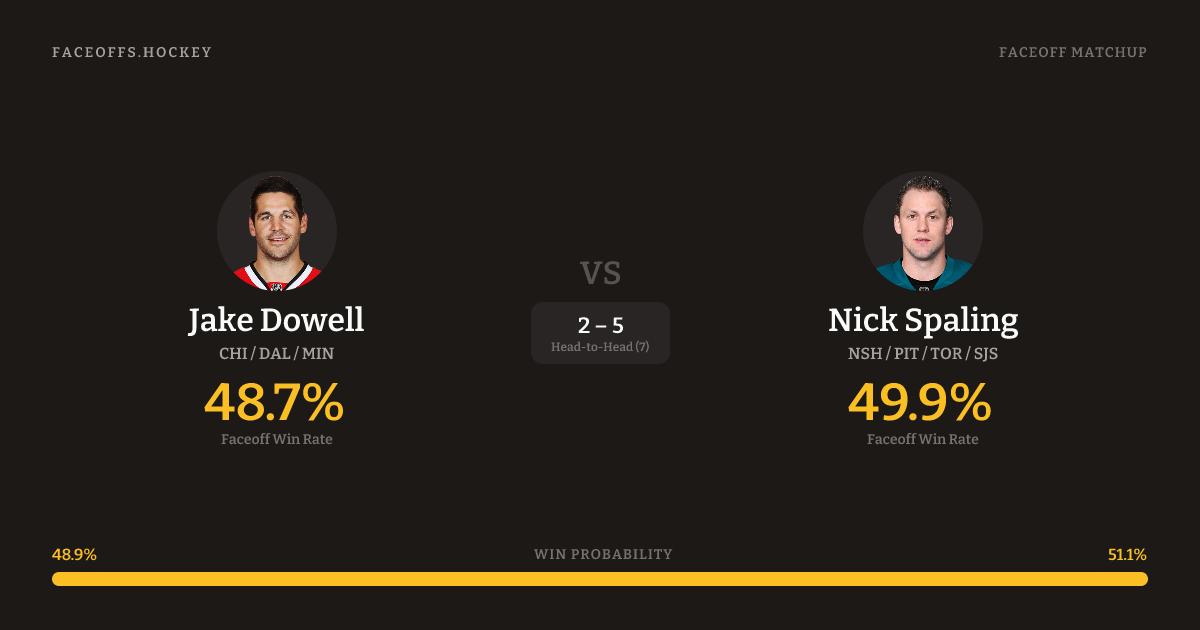 Jake Dowell vs Nick Spaling — Faceoff Head-to-Head