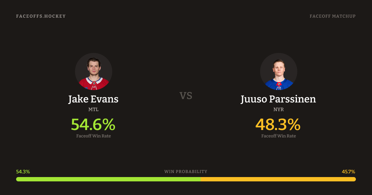 Jake Evans vs Juuso Parssinen — Faceoff Head-to-Head