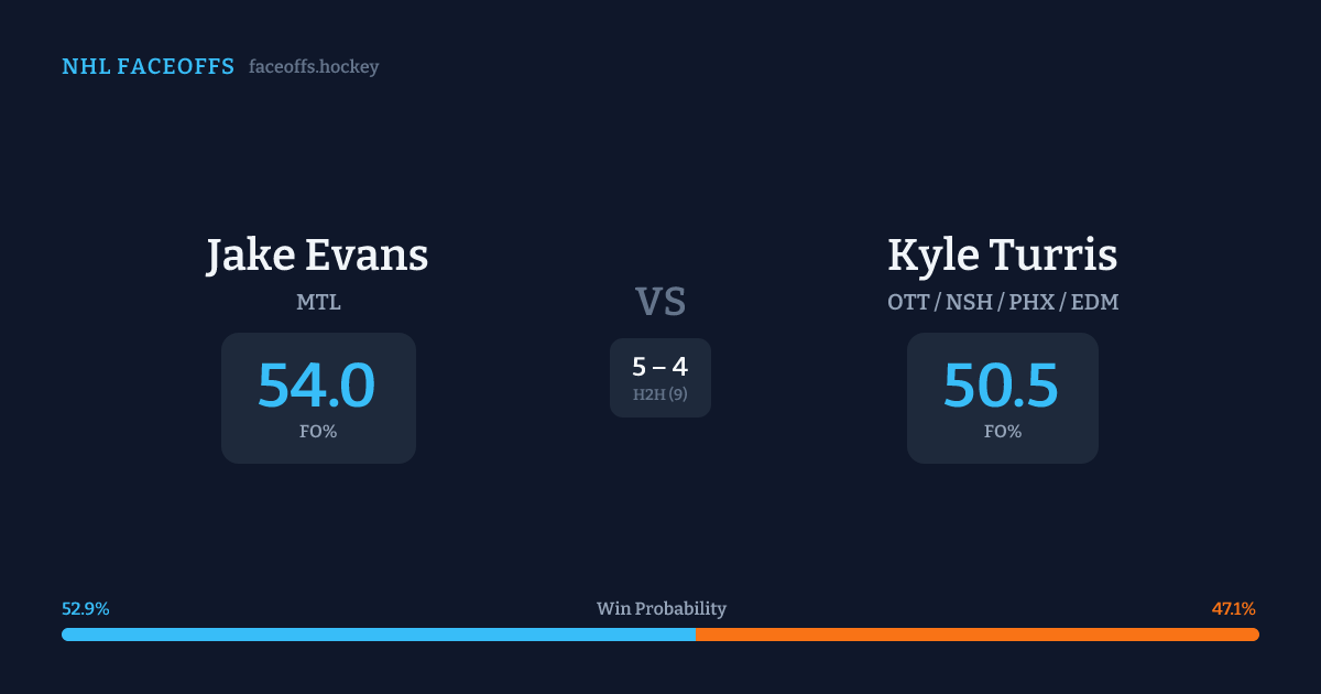 Jake Evans vs Kyle Turris — Faceoff Head-to-Head