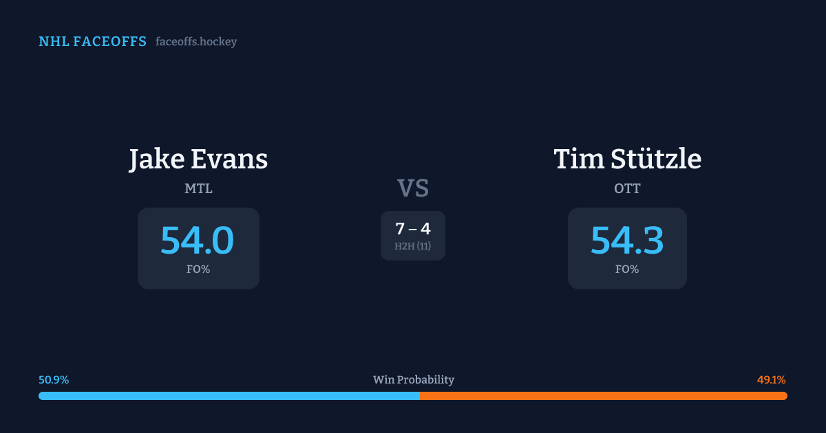 Jake Evans vs Tim Stützle — Faceoff Head-to-Head