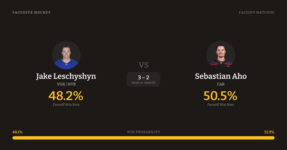 Leschyshyn shoots left. Aho is 51.3% vs left-shot opponents (674).