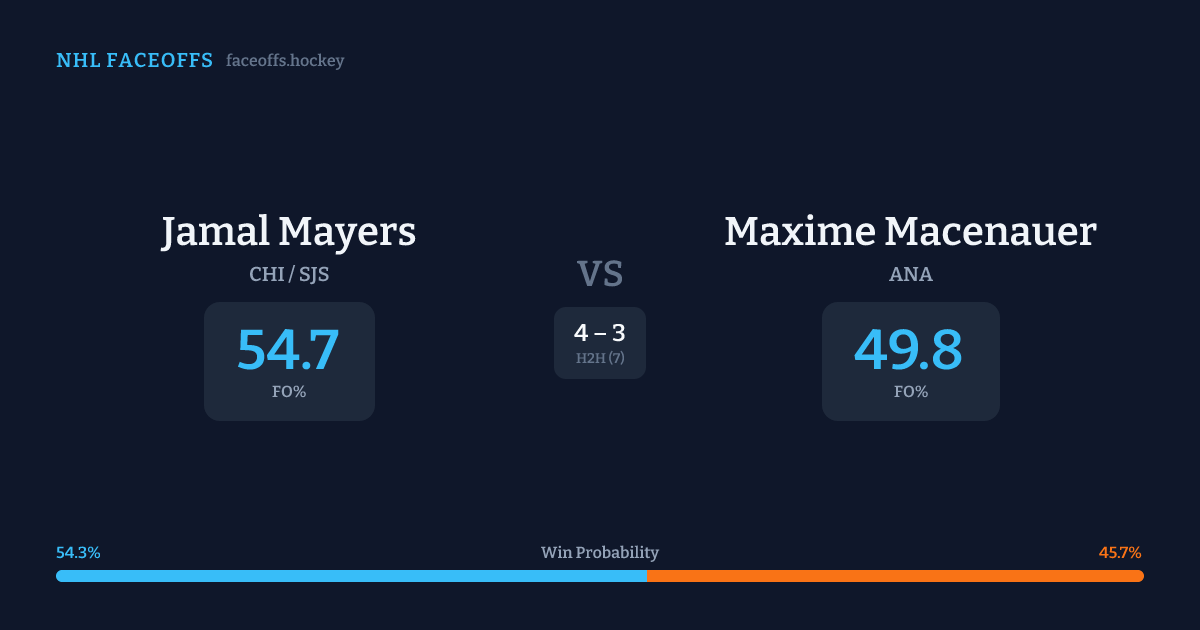 Jamal Mayers vs Maxime Macenauer — Faceoff Head-to-Head