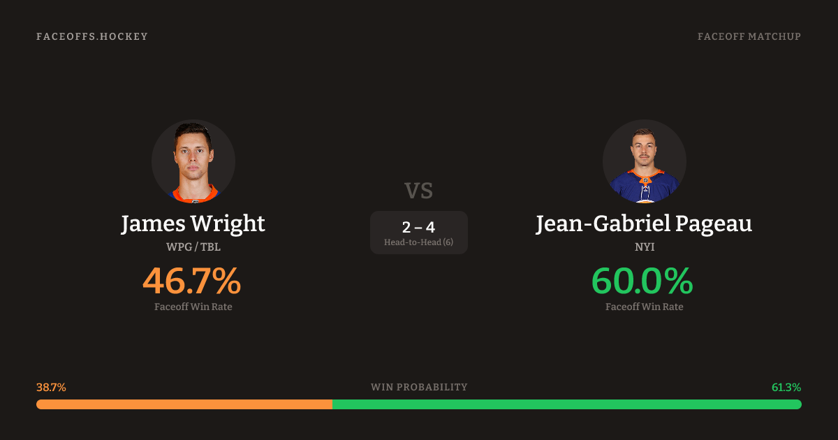 James Wright vs Jean-Gabriel Pageau — Faceoff Head-to-Head