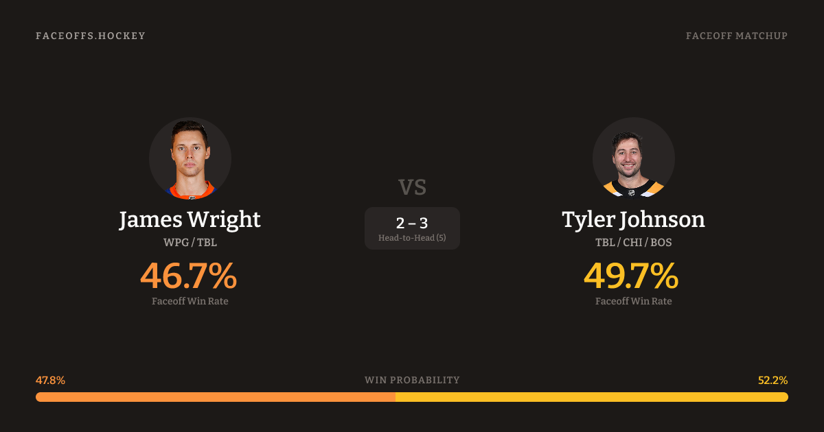 James Wright vs Tyler Johnson — Faceoff Head-to-Head